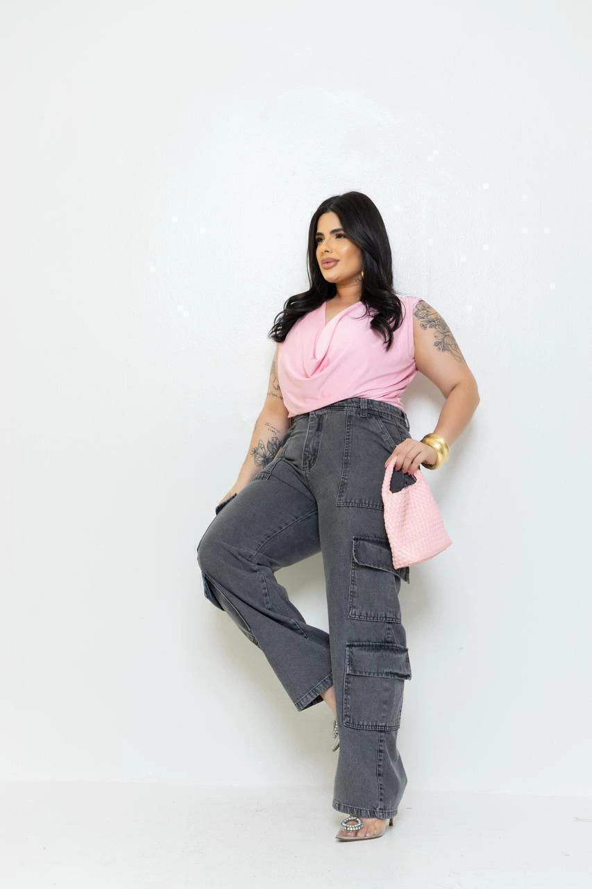 A Calça Cargo Plus Size é a escolha perfeita para quem busca conforto e estilo em uma peça moderna. Produzida em 100% jeans e sem elastano, seu modelo wide leg proporciona um caimento amplo e despojado, ideal para looks descolados. A lavagem vintage adiciona um toque retrô super atual.