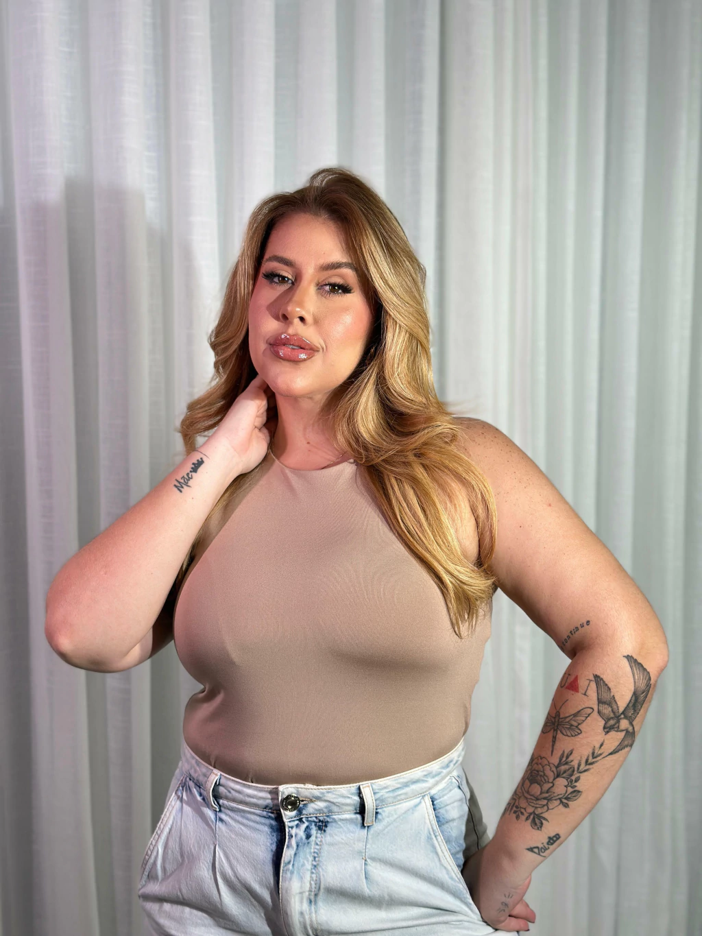 Regata Plus Bege — o básico que faltava no seu guarda-roupa! Confeccionada em tecido suplex, esta regata veste super bem e estica, garantindo conforto absoluto para você se sentir Bella o dia todo.