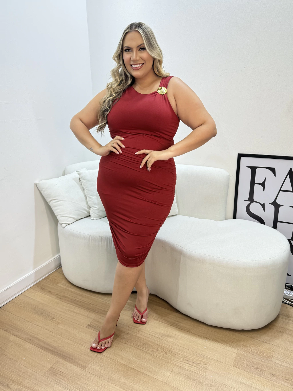 Vestido Milena Plus Vermelho é a escolha perfeita para quem busca elegância e conforto em uma única peça. Confeccionado em tecido suplex de alta qualidade, destaca-se pelo detalhe orgânico que confere um toque único e sofisticado. Os grapeados nas laterais garantem ajuste perfeito ao corpo, valorizando suas curvas com charme e estilo. Ideal para ocasiões especiais, este vestido une beleza e praticidade para você brilhar em qualquer evento. Adquira já o seu e sinta-se Bella!